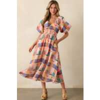 You're Right On Time Blush Pink Floral Plaid Maxi Dress S / Blush Pink