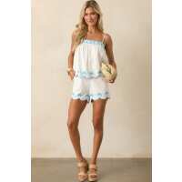 Camera Shy White Embroidered Scallop Hem High Waisted Shorts S / White