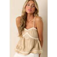 Waiting For You Tan Braided Trim Tank Top S / Taupe