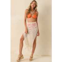 Lost In The Sunlight Natural Ivory Open Knit Fringe Cover Up Midi Skirt S / Ivory