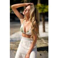 Sandy Adventures Ivory Tropical Print Bikini Top S / Ivory