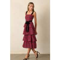 Elegance Defined Cotton Red Plaid Tiered Midi Dress XS / Red