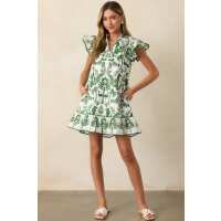 Hopping Islands Green Tropical Print Flutter Sleeve Mini Dress XS / Multi