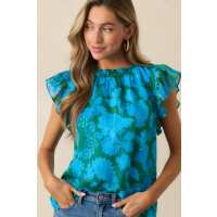 Enchanted Beams Blue Floral Flutter Sleeve Blouse XS / Blue