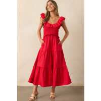 Patio Sunsets Cotton Red Maxi Dress XS / Red