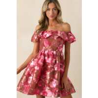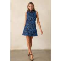 Glistening Skies Midnight Blue Floral Jacquard Mini Dress XS / Navy