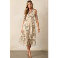Honestly Love You Beige Floral Midi Dress S / Beige