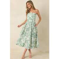 The Genevieve 100% Cotton Green Toile Strapless Midi Dress S / Kelly Green