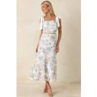You Grow Girl Ivory Lace Floral Midi Dress S / Ivory