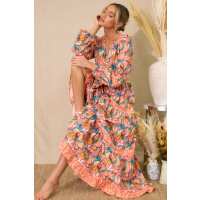 Just Follow Me Coral Floral Print Maxi Dress XS / Coral