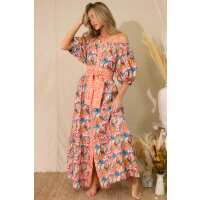 Good Flows To Me Coral Floral Print Maxi Dress XS / Coral