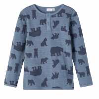 name it Merinowoll-Langarmshirt China Blue mit Bären 110