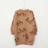 Lötiekids langes Sweatkleid rost orange Pferdedruck 2/3Y