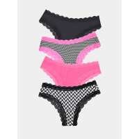 High Rise Knicker Four Pack - Pink and Red Contrast L
