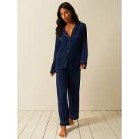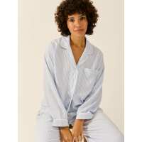 Soft Brushed Woven Pyjama Top - Blue Stripe S