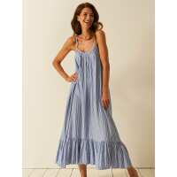 Seersucker Midi Frill Everywhere Dress - Amparo Blue Stripe S