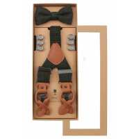 Hosenträger Set Herren mit Fliege aus Wolle – Tweed Dunkelgrün