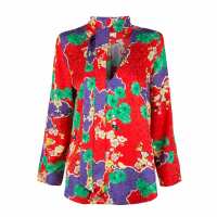 RIXO London Sadie Neck Tie Blouse - Red Cherry Blossom