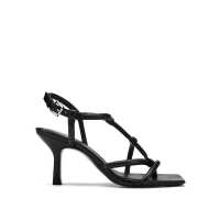 Ash Mask Strappy Heeled Leather Sandals - Black