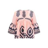 KORI Embroidered Linen Top - Pink & Navy