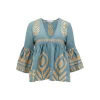 KORI Embroidered Linen Top - Teal & Gold