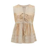 KORI Triangle Sleeveless Embroidered Tie Linen Top - Sand & Gold