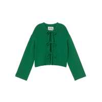 THE TINY BIG SISTER Tie Detail Merino Wool Cardigan - Dark Green