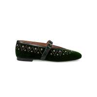 BIBI LOU Naila Ballerina Flat Velvet Shoes - Khaki