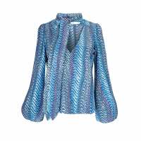 RIXO London Kate Silk Blouse - Blue Psych Wave