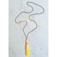 TRIBE + FABLE Single Tassel Necklace - Citrus Yellow & Crystal