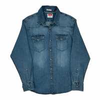 Wrangler Denim Shirt - Large Blue Cotton Blend