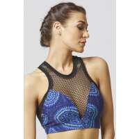 CoolMesh High Neck Aztec Print Gym Bra Blue L / Blue