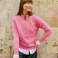 Ladies zip neck jumper - pink