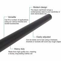 Wardrobe Rail Black Wall and Wardrobe Mounted for Clothes Hanging - 25 x 1829mm