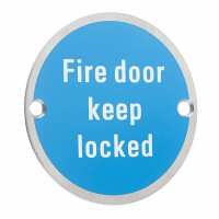 Circular Disc Fire Door Signage - 76mm x 1.5mm - Screw Fixed - Fire Door Keep Locked