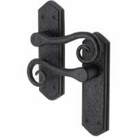 Black Iron Lever Door Handles on Backplate Curly Tail Pattern Latch Door Handles - Black