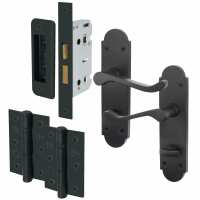 Victorian Rectory Matt Black Lever Door Handle Pack - 64mm Bathroom Lock