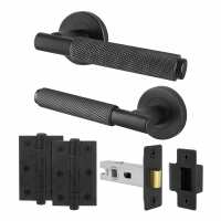 Dinis Knurled Matt Black Lever on Rose Door Handle Pack - 64mm Latch