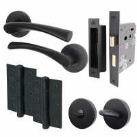 Victorian Rectory Matt Black Lever Door Handle Pack - 64mm Bathroom Lock