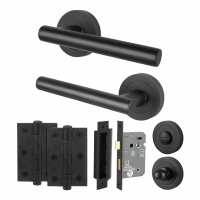 Olbia Matt Black Lever on Rose Door Handle Pack - 80mm Bathroom Lock
