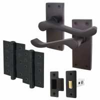 Victorian Rectory Matt Black Lever Door Handle Pack - 64mm Sashlock - 76mm Hinges