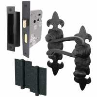 Fleur De Lys Antique Black Cast Iron Lever Door Handle Pack - Bathroom