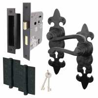 Fleur De Lys Antique Black Cast Iron Lever Door Handle Pack - 3 Lever Sashlock