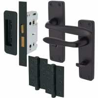 Sassari Matt Black Lever Door Handle Pack - 64mm Bathroom Lock