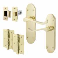 Victorian Rectory Polished Brass Lever Door Handle Pack - 64mm Latch - 76mm Hinges