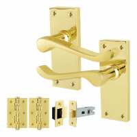 Victorian Scroll Polished Brass Lever Door Handle Pack - 64mm Latch