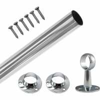 Wardrobe Rail Kit - 25mm Tube - 1829mm Rail with 2x End Sockets & 1x Centre Bracket - Polished Chrome