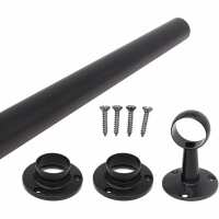 Wardrobe Rail Kit - Black - 25mm Tube - 1219mm Rail with 2x End Sockets & 1x Centre Brackets - 25 x 1219 mm