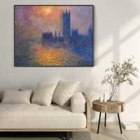 Large Claude Monet Framed Canvas Print of Houses of Parliament Sunset Landscape Painting XL : 100x84cm