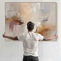 Neutral Abstract Framed Wall Art - Floral Dream - for Living Room XXL : 123x97cm
